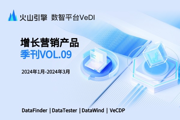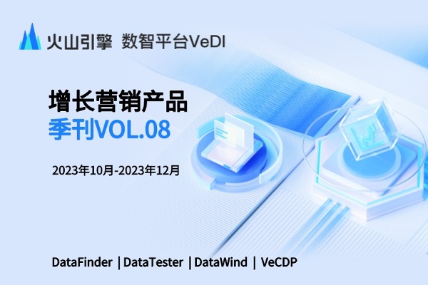 更多技术交流、求职机会,欢迎关注字节跳动数据平台微信公众号,回复【1】进入官方交流群火山引擎增长营销产品季刊涵盖 「增长分析 DataFinder」「A/B测试 DataTester」「智能数据洞察 DataWind」「客户数据平台 VeCDP」四款营销增长产品 的功能迭代、重点功能介绍、产品联动使用案例、平台最新活动等多个有趣、有料的模块内容。季度更新,接下来让我们来看看近期营销增长产品有什么大