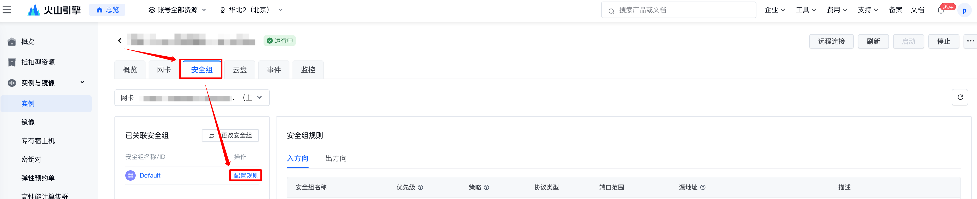 选择“安全组”页签,单击“配置规则”按钮。