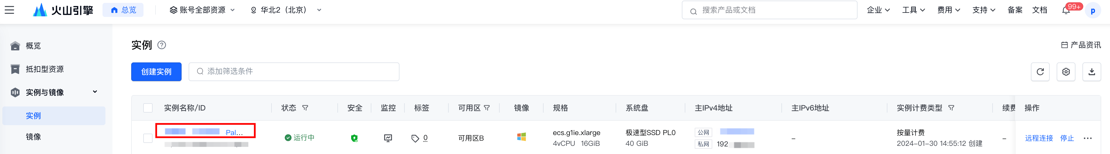 在实例列表页中找到目标实例,单击实例名称进入详情页。