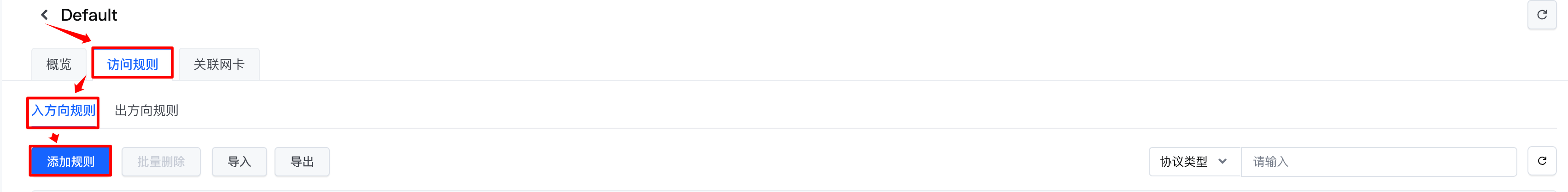 在“添加入方向规则”页面中,依次选择“协议类型”为