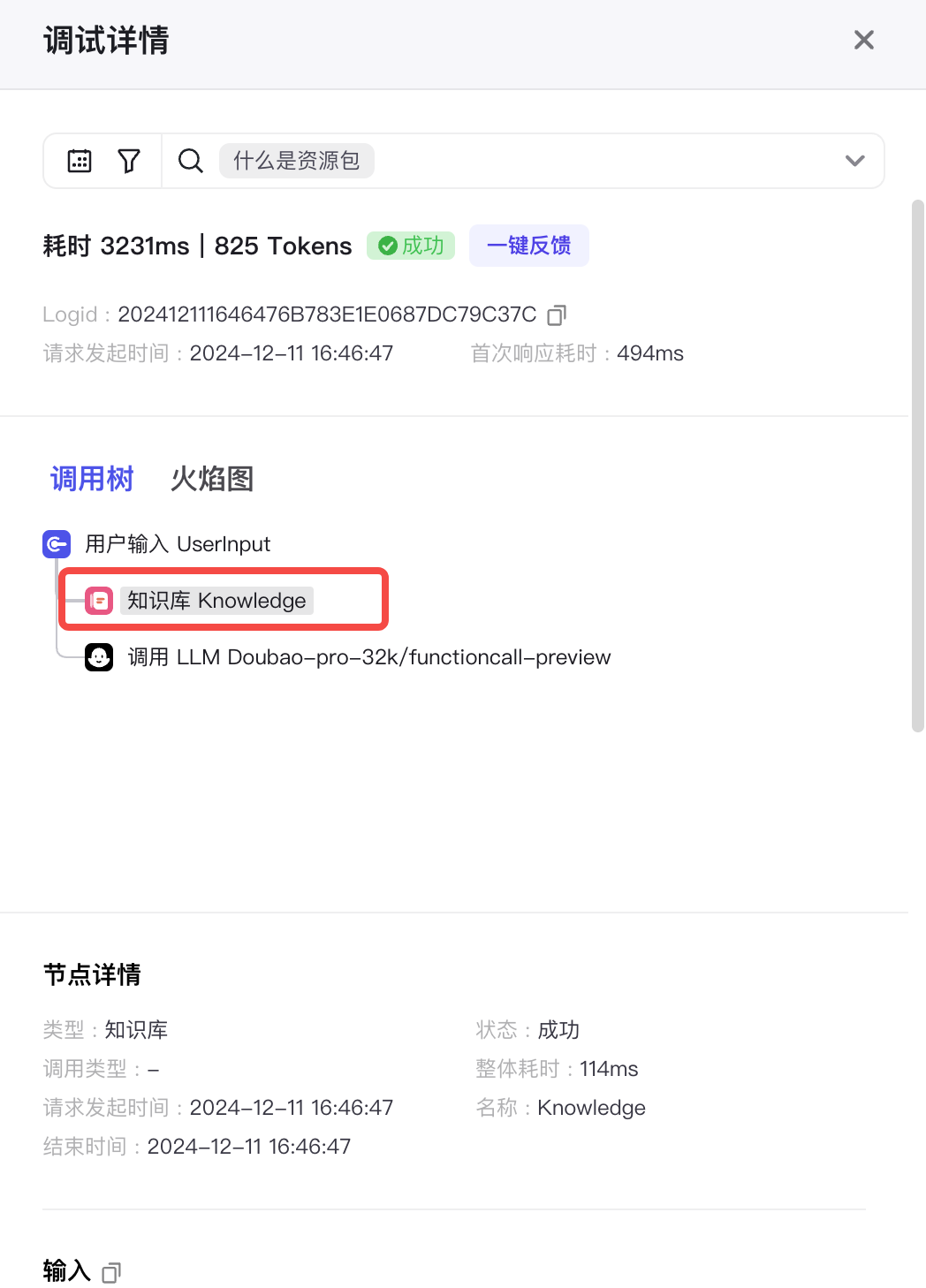 根据设置的匹配度和召回数量,返回符合要求的知识库分片,可在调试界面中查看召回的内容