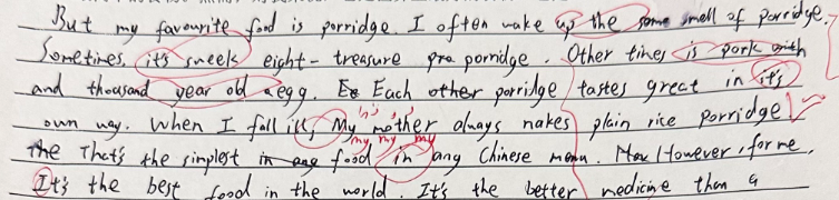 从主题表达、段落结构、语法错误(时态 / 冠词 / 介词 / 从句使用等)、词汇准确性与多样性、句型复杂度等维度进行诊断,提供错误修正方案与提升技巧。
