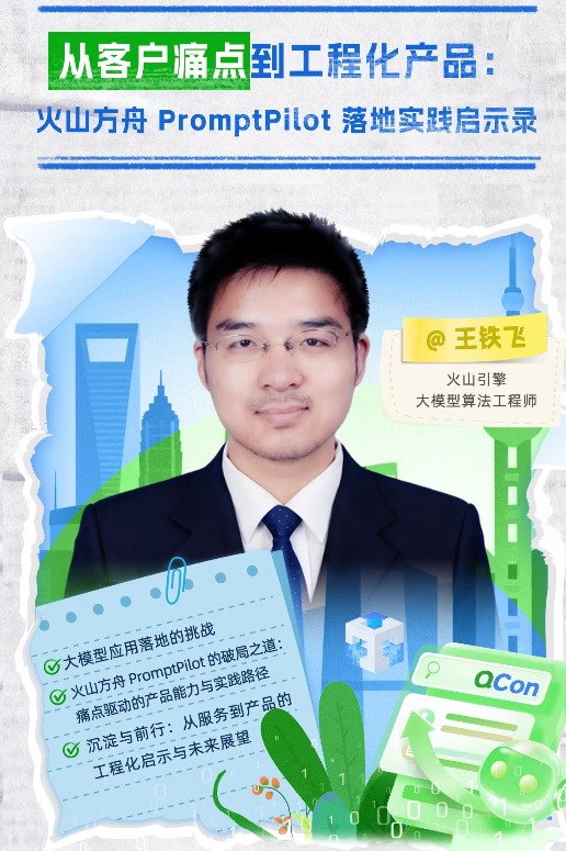 本次分享将结合火山引擎服务多行业客户的实战洞察,剖析大模型落地中的核心挑战,详解火山方舟 PromptPilot 如何构建四大核心 “超能力模块”,助力产品成为 AI 能力进化的多维引擎,分享从定制化服务到工程化产品的决策逻辑与实践细节,并沉淀可复用的技术架构与产品化启示。