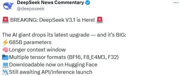 DeepSeek V3.1发布!