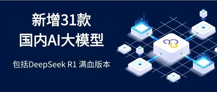新增DeepSeek R1满血版本等31款国内顶级AI大模型,助力企业AI流程自动化,AI客户服务与获客场景