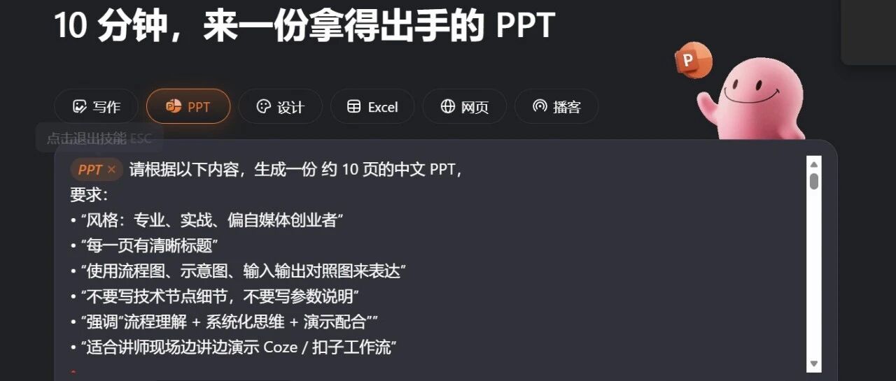 给线下分享做 PPT,我第一次真正感受到AI智能体在帮我省时间