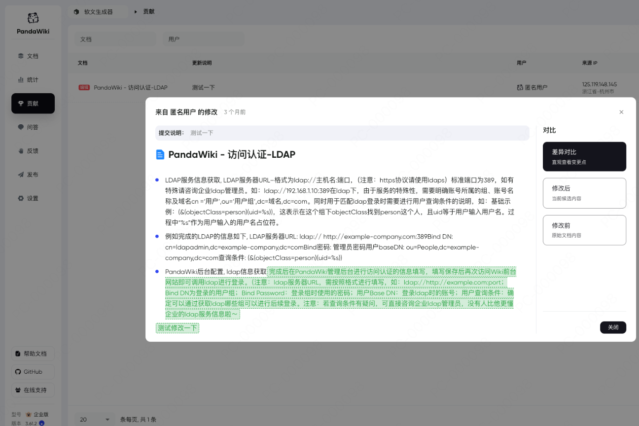 技术文档散落在语雀、GitHub、本地硬盘,新员工入职像 “寻宝”;写一份部署手册要熬 4 小时,修改迭代还要跨平台同步;搜索 “token 过期解决方案”,返回几十篇无关文档,翻半天找不到重点;敏感数据不敢存云端,私有化部署又要折腾好几天……在信息爆炸的时代,我们囤积了海量知识,却陷入 “存得住、找不着、用不上” 的困境。直到 PandaWiki 的出现 —— 这款 GitHub 斩获 8.3