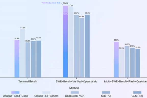 双十一这天,各种产品降价优惠,什么吃的喝的穿的了......那我们程序员也不能亏待哈,必须安排上,然后字节这不就安排上活了嘛!字节在这一天发布了豆包大模型家族的首款变成模型,Doubao-Seed-Code。目前,已经在多项的权威测评中拿到了国内的领先成绩。配合Trae的开发环境,在SWE-Bench Verified榜单上以78.8%的得分直接登顶。Doubao‑Seed‑Code,作为一款面向