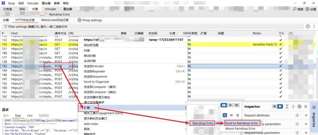 1 ►工具介绍日常渗透过程中,经常会碰到一些网站需要破解其 JS 加密算法后,才能对数据包进行修改。我们将加密算法破解出来后,一般就是使用 python 的 requests 库,发送修改的数据包来进行渗透测试,导致效率低下,因此考虑将 JS 逆向的结果通过插件与 burp 结合,提高效率。在 JS 逆向结束之后,通过 RaindropEcho 提供的 JS 模版,导入到插件,就可以完成 burp